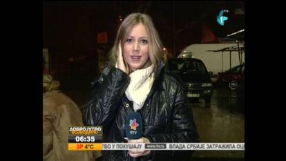 Un desconocido muestra una pistola a una reportera serbia en pleno directo