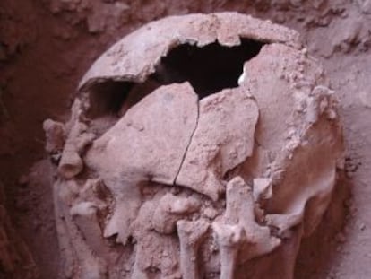 El estudio de los cadáveres ha requerido la participación de un equipo multidisciplinar y su trabajo parece un relato policíaco. Por ejemplo, el caso de los dos muertos sin marcas de violencia, que probablemente fallecieron atados. Uno de ellos es la mujer encinta, hallada en una postura que indica que fue agonizó con las muñecas y tobillos inmovilizados. “Solo podemos ver las marcas que quedan en los huesos así que no sabemos si les cortaron el cuello, estos son los únicos que no tienen traumatismos, pero ambos están con las manos juntas, lo que parece una gran casualidad”, explica Maíllo.