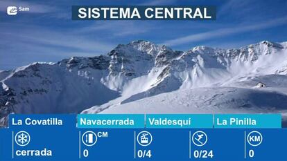 Sigue con EL PAÍS VÍDEO el estado de las pistas de esquí de La Pinilla, Puerto de Navacerrada, Sierra de Béjar y Valdesquí
