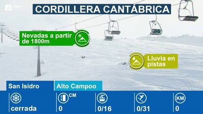Sigue con EL PAÍS VÍDEO el estado de las pistas de esquí de Alto Campoo, Leitariegos, Manzaneda San Isidro y Valgrande-Pajares