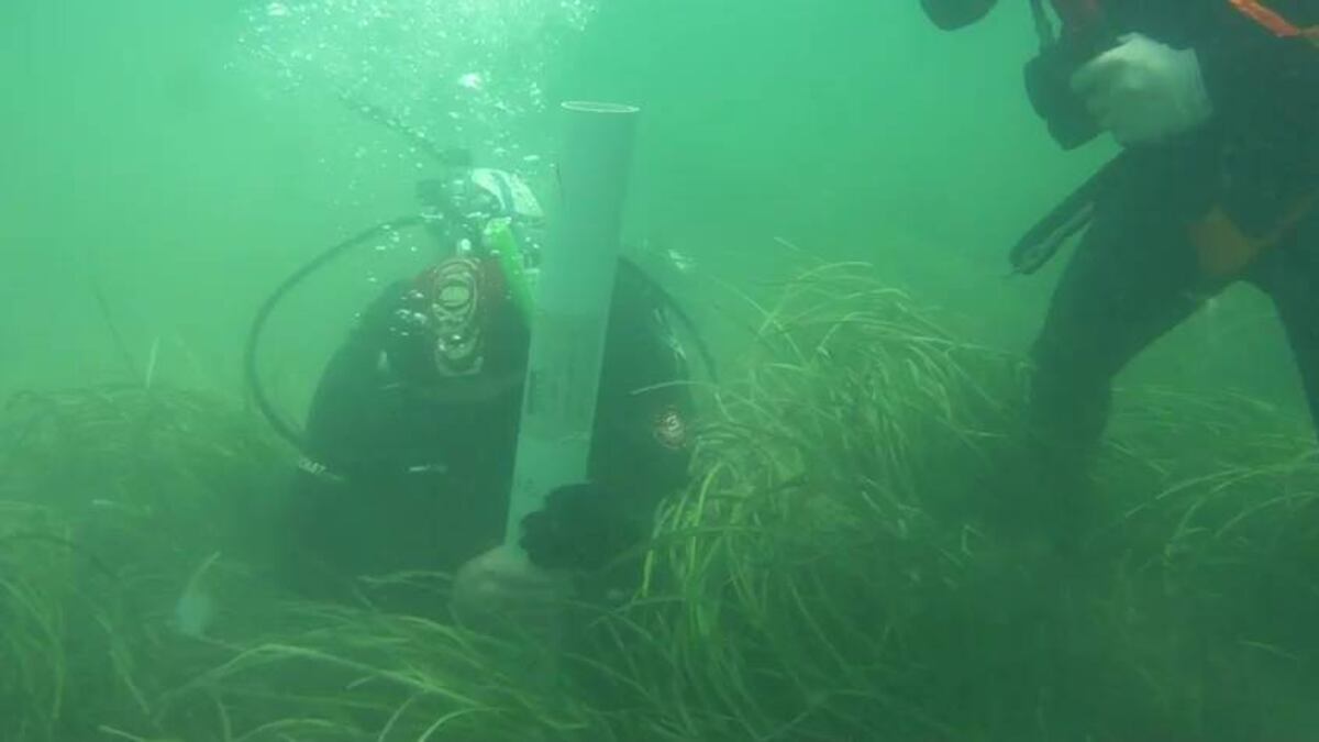 Para estudiar la historia de las praderas marinas, los científicos clavaron tubos de plástico en el subsuelo marino. Con ellos obtuvieron muestras de fondo marino de varias decenas de centímetros de profundidad. Lo suficiente para llegar hasta 600 años de antigüedad, aprovechando que los sedimentos más antiguos se encontraban más abajo. “Una vez extraído, lo seccionamos con una sierra circular y tomamos las muestras para el estudio”, explica Serrano, investigador de la Edith Cowan University.