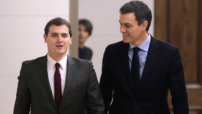 Rivera plantea a Sánchez un pacto de legislatura, pero mantiene los vetos. Las posibilidades de que el PSOE y Ciudadanos alcancen un acuerdo para la legislatura son altas, tras la reunión mantenida este jueves por los líderes de las dos formaciones. El problema viene por los vetos que ambos mantienen a fuerzas políticas. Ciudadanos no avalará la investidura a la presidencia de Sánchez si en ella participa Podemos. Por su parte, el PSOE rechaza de plano pedir el apoyo al PP —aunque no se lo daría— para formar una mayoría. El líder de Ciudadanos ha hablado también con Rajoy, en este caso para tratar el desafío secesionista. Además, esta mañana se ha hecho pública la encuesta del CIS en la que queda de manifiesto que si se repiten las elecciones, el resultado sería prácticamente idéntico al del 20-D. La única novedad es que Podemos superaría al PSOE en intención de voto.