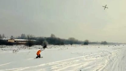 Lo han bautizado como droneboarding o snowboard con dron y es exactamente eso: deslizar con la tabla de nieve remolcado por un dron. La idea ha surgido de la colaboración de Kaspars Balamovskis y la compañía Aerones, quienes grabaron un vídeo cerca de la capital letona, Riga, para mostrar el nuevo deporte. En un comunicado, el fabricante de aeronaves no tripuladas ha explicado que se trata de un diseño especial para la ocasión con una capacidad de cargar hasta 37 kilos, suficiente para tirar de Balamovskis. De momento, aseguran, el experimento ha sido un éxito y por eso buscan socios que les ayuden a diseñar una barra de agarre específica para la nueva disciplina.