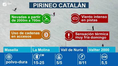 Sigue con EL PAÍS VÍDEO el estado de las pistas de esquí de Baqueira Beret, Boí Taüll, Espot Esquí, La Molina, Masella, Port Ainé, Port del Comte, Tavascán, Vall de Núria y Vallter 2000
