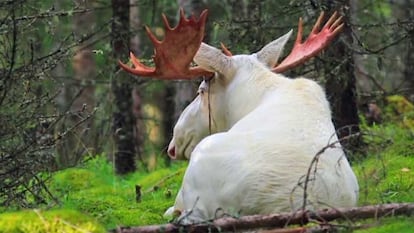 Un alce blanco. Ese fue el grato encuentro que tuvo un día el noruego Lasse Dybdahl. Bombero jubilado de 62 años, Dybdahl es también fotógrafo de naturaleza, así que decidió hacer un seguimiento del ejemplar durante un año entre 2014 y 2015. Recientemente compartió esas imágenes en las redes sociales y en su blog. Se trata de un extraño ejemplar de unos 6 años de edad y no es el único de su hábitat con esa particularidad genética que convierte el pelaje, normalmente marrón, en blanco. Un día, ha contado el autor del vídeo a la agencia Reuters, vio otro similar. Lo que no ha querido revelar es la zona exacta donde se produjeron esos encuentros para que los animales sigan viviendo lo más tranquilos que puedan. Se sabe, eso sí, que fue en un bosque de Suecia próximo a la frontera con Noruega.