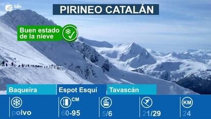 Sigue con EL PAÍS VÍDEO el estado de las pistas de esquí de Baqueira Beret, Boí Taüll, Espot Esquí, La Molina, Masella, Port Ainé, Port del Comte, Tavascán, Vall de Núria y Vallter 2000