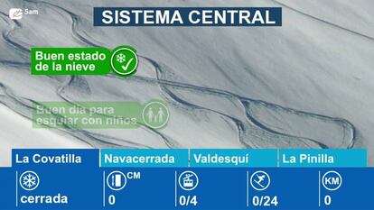 Sigue con EL PAÍS VÍDEO el estado de las pistas de esquí de La Pinilla, Puerto de Navacerrada, Sierra de Béjar y Valdesquí