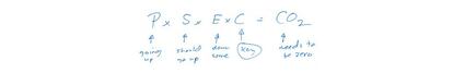 Como aprendimos en clase de matemáticas, cualquier número multiplicado por cero es igual a cero. Así que si queremos tener cero CO2, debemos conseguir que al menos uno de los cuatro factores de la izquierda sea cero.