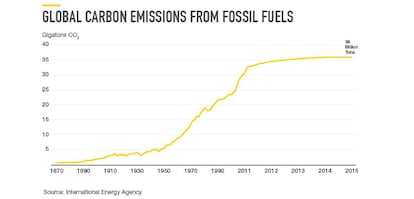 Es un desafío enorme. En 2015, el mundo emitió 36.000 millones de toneladas de CO2 para producir energía. La cifra marea. Conviene recordarla, porque nos será útil. Alguien podría deciros, por ejemplo, que sabe cómo eliminar 100 millones de toneladas al año, Parece mucho, pero si hacéis el cálculo —100 millones dividido entre 36.000 millones—, comprobaréis que estamos hablando de un 0,3% del problema. Cualquier reducción en las emisiones ayuda, pero tenemos que seguir trabajando en el 99,7% restante.