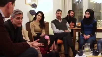 George Clooney y su mujer, Amal Clooney, se reunieron el martes con tres familias de refugiados sirios en Berlín para escuchar sus historias y para crear conciencia sobre la mayor crisis migratoria y humanitaria que está teniendo lugar en Europa como consecuencia de la guerra de Siria. "Hace 100 años todos éramos refugiados en Estados Unidos", explicó el actor a las familias. "Todos estábamos en vuestra situación y creo que no estamos haciendo lo suficiente por recordar eso".