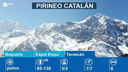 Sigue con EL PAÍS VÍDEO el estado de las pistas de esquí de Baqueira Beret, Boí Taüll, Espot Esquí, La Molina, Masella, Port Ainé, Port del Comte, Tavascán, Vall de Núria y Vallter 2000