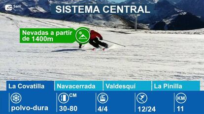 Sigue con EL PAÍS VÍDEO el estado de las pistas de esquí de La Pinilla, Puerto de Navacerrada, Sierra de Béjar y Valdesquí