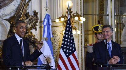 "Estoy orgulloso de anunciar que acabo de probar el mate por primera vez". Con tono aparentemente solemne el presidente de EE UU, Barack Obama, ha logrado hacer reír a su homólogo argentino, Mauricio Macri, y a los periodistas presentes en la rueda de prensa que ambos han ofrecido en Buenos Aires. En su primera visita oficial a Argentina, Obama ha confesado que en su etapa universitaria leía a Borges o Cortázar y no sabía qué era el mate, así que siempre quiso probarlo. "Estaba bastante bueno", ha juzgado Obama antes de redondear la broma asegurando que piensa llevarse un poco a Washington y que no le importa si viola alguna norma de importación: "Normalmente en el [avión presidencial] Air Force One puedo hacer lo que yo quiera".