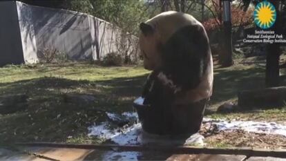 El panda gigante del zoo de Washington se asea en un barreño de agua