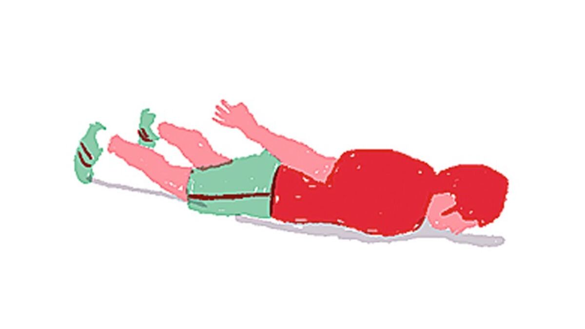 Tumbado bocabajo, coloque los brazos junto al cuerpo, oriente la cabeza al frente y lleve los hombros hacia atrás, intentando tocar la columna con las escápulas. Mantenga la posición dos segundos y vuelva al inicio. Haga tres series de ocho repeticiones.