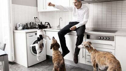 De los traumas pasados no solo quedan secuelas físicas, como la cojera de Martina. “La arrojaron de cachorro a un pozo. Ahora le cuesta confiar en las personas. No en nosotros, pero sí en terceros. Es excesivamente dependiente y muy introvertida”. Ellos también conocen a su dueño, que ha atravesado etapas complicadas en la Audiencia Nacional, cuando se convirtió en el azote de la banda terrorista ETA. “Están ahí en los momentos más duros y en los menos duros. Cuando llegas agotado a casa son los que mejor evalúan tus sentimientos. Cuando los tengo cerca es como si absorbiera su energía. Si necesito un plus de fuerza, ellos me lo dan encantados”.