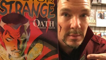 Benedict Cumberbatch entra a una tienda de cómics como el Dr. Extraño