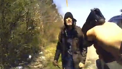 El agente saca al sospechoso de su coche cuando de repente se escabulle, saca un cuchillo y pide que le mate. El policía reacciona pegándole un tiro en la pierna, pero lejos de acabar todo ahí, el hombre se levanta, por lo que el agente, pistola siempre en mano, da aviso de la situación a sus compañeros y le grita que se tire al suelo. El presunto criminal no hace caso, intenta acercarse al policía, pero la herida en la pierna hace que se caiga y se levante constantemente. Los gritos continúan: uno que tire el cuchillo y el otro pidiendo que le mate. Así pasan varios minutos, en medio de la carretera por la que el sospechoso acaba deambulando y sin chaqueta, hasta que exhausto se retira a una acera. Es ahí cuando el agente, acompañado por otros compañeros, le detienen. Se trataba del sospechoso de un homicidio cometido este mismo año.