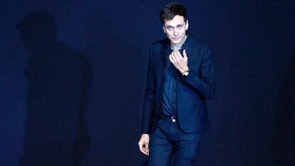 El hombre del que más se ha hablado en los círculos de la moda durante la última semana no tiene página propia en la Wikipedia. El lunes, Anthony Vaccarello (Bruselas, 1982) se convertía en el nuevo director creativo de Yves Saint Laurent, confirmando un rumor que se había vuelto más insistente en los últimos meses, pero su perfil público seguía siendo relativamente discreto. La nota con la que Kering (empresa propietaria de la firma) comunicaba el fichaje de Vaccarello incluía una síntesis de sus logros profesionales, y los elogios de Francesca Bettini, consejera delegada de la marca francesa, que subrayaba su estética “moderna y pura”.
