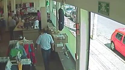 En la capital del Estado más violento de México, Toluca, un hombre entra a una tienda de ropa y a mata a un hombre a sangre fría. El vídeo de la cámara de seguridad del comercio ha circulado por las redes sociales este viernes, aunque fue grabado a principios de abril, y ha causado gran indignación porque el agresor no tenía ninguna necesidad de disparar a nadie para salirse con la suya. Ya llevaba todo el dinero de las dos cajas de la tienda y estaba a punto de escaparse por la puerta principal.