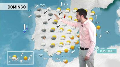 Domingo con lluvias en la mitad oeste peninsular que se irán extendiendo hacia el resto de zonas interiores. Las temperaturas suben notablemente en el Cantábrico Oriental y alto Ebro