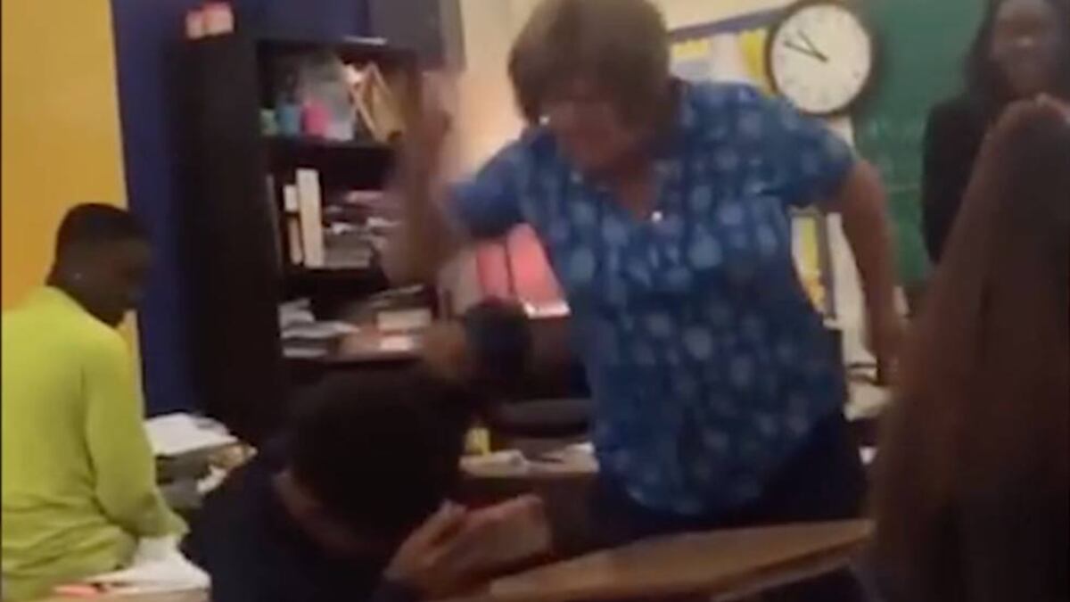 La profesora tejana Mary A. Hastings (63 años) de la Ozen High School fue detenida y acusada de agresión después de que un vídeo, en el que golpea a uno de sus estudiantes varias veces y que fue subido a Twitter por una de sus alumnas, se viralizara en redes sociales. La docente de matemáticas salió libre después de pagar una fianza de 2.500 dólares (unos 2.200 euros).