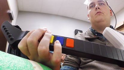 Un chico paralizado logra tocar la guitarra con un sistema que puentea su lesión medular