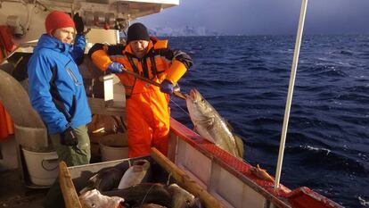 Es posible que usted se haya comido un pez capturado por Børge Iversen. “He pescado millones de bacalaos”, calcula este noruego barbudo mientras aúpa distraídamente a su barco un ejemplar de unos 20 kilogramos todavía vivo, enganchado a un palo con un clavo. No exagera. Lleva pescando desde los 15 años y tiene 58. Cada día a las cuatro de la mañana, excepto los domingos, sale a faenar desde el puerto de Ballstad, un minúsculo pueblo de pescadores de 800 habitantes perdido en el círculo polar ártico noruego. Iversen va completamente solo. Gobierna su barco de 15 metros de eslora fumando tabaco de liar y echa al mar el palangre, un cordel del que cuelgan cientos de anzuelos. Los bacalaos pican sin parar y los va subiendo a cubierta uno por uno. Este año tiene una cuota de 100.000 kilogramos para él solo. “Hoy hace bueno”, resume en medio de lo que para cualquier profano sería una ventisca de nieve en el invierno ártico.