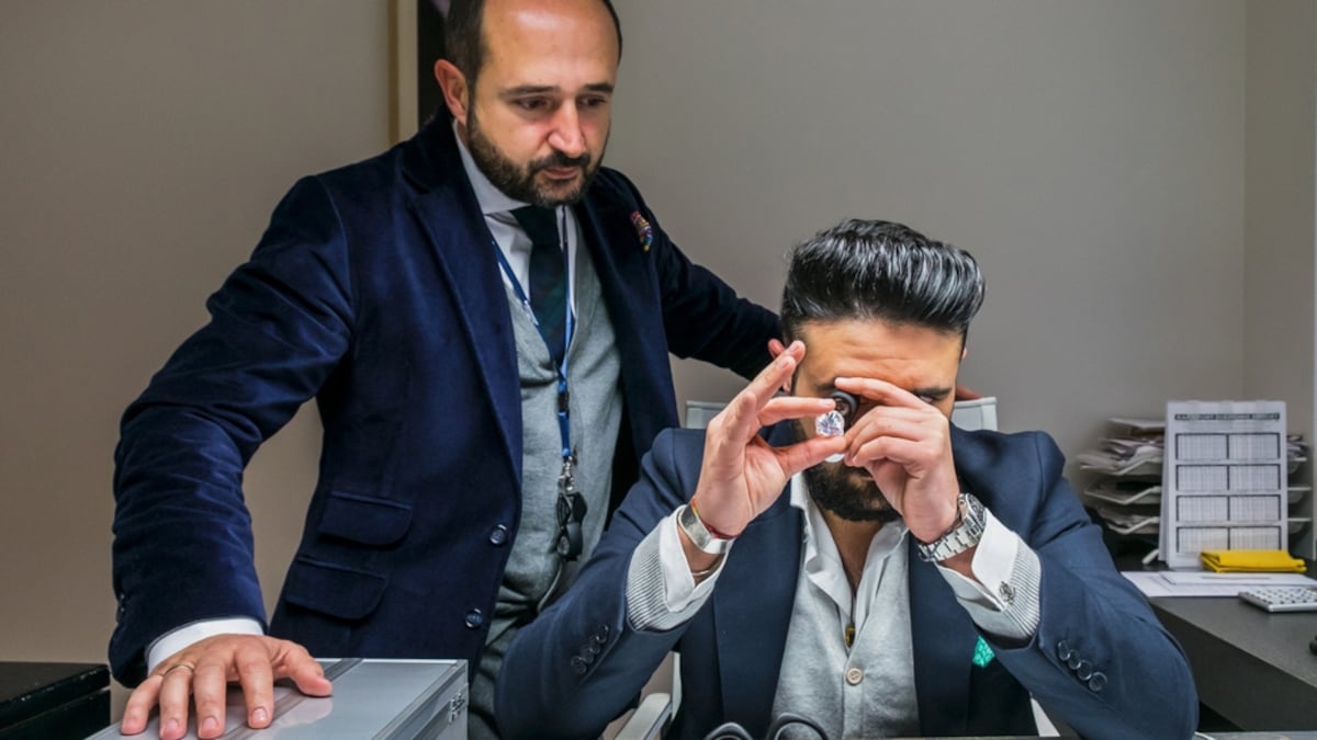 Gandhi trae varias bolsitas negras. Abre una de ellas y una orgía de brillos cubre la mesa: pequeños ejemplares, ideales para engarzar. Luna, con una lupa en la mano y una balanza a su vera, empieza a examinarlos. “Al ojo inexperto se le puede engañar”, avisa. Al suyo no. Aunque Gandhi es su proveedor de confianza, y llevan años trabajando juntos, siempre es necesario comprobarlo todo. El sonido de un timbre interrumpe su análisis. El comerciante alza la cabeza hacia las cuatro cámaras que desde su despacho controlan la oficina. Se trata de un vendedor. La secretaria da paso al hombre de unos 50 años, que va directo a hablar con Gandhi. Desenvuelve un pequeño paquete (lo que se conoce como un parcel en la jerga diamantina) y muestra su contenido. Tras una corta charla, se dan la mano. “Así se cierran los tratos aquí”, anuncia Gandhi. Una costumbre que emana de la Halachá, la ley judía, y que sella los acuerdos sin necesidad de firmar. Un compromiso atávico que se aplica a la compraventa de objetos que cuestan miles de euros.