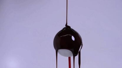 Mientras daba vueltas a este problema, recibió una visita algo atípica en el MIT. Se trataba de tres cocineros del restaurante vasco Mugaritz que andaban buscando nuevas técnicas para aplicar a sus recetas. Los cocineros consiguieron su objetivo, pero también dejaron alguna idea a su paso. “Me mostraron una receta de huevos rotos en la que recreaban una cáscara de huevo utilizando un molde y manitol, un azúcar con una textura parecida al polímero de silicona que usábamos nosotros: el problema era idéntico al nuestro”, explica Reis. Gracias a esto comprendió que se trataba de un problema bastante común, por lo que él y su equipo decidieron buscar casos similares. Fue un colaborador, François Gallaire de la Escuela Politécnica Federal de Lausana en Suiza, quien encontró la clave en la elaboración de bombones.