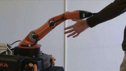"Cuando un ser humano entra en escena, lo vemos coloreado. Así conocemos dónde están los obstáculos", apunta una investigadora de la empresa Sintef, creadora del sistema. Acto seguido, un algoritmo calcula en menos de 20 milisegundos los movimientos del robot para evitar los accidentes.