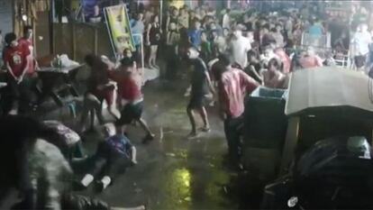 Una familia británica recibió una brutal paliza en las calles de Hua Hin, un puerto turístico a unos 136 kilómetros de Bangkok (Tailandia), durante la celebración del Año Nuevo budista el pasado día 13. El suceso fue recogido en vídeo por las cámaras de seguridad y se ha hecho público este jueves. Las imágenes muestran el choque fortuito de la familia con una pareja de tailandeses que en ese momento mantenía una discusión. El encontronazo provocó una reyerta a la que se añadieron más transeúntes, quedando el padre, la madre y el hijo británicos malheridos en el suelo. Tres tailandeses con edades comprendidas entre los 20 y los 32 años han sido arrestados por la agresión, según ha informado el comandante Chaiyakorn Seeladecho.