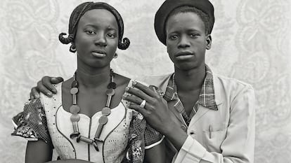 SEYDOU Keïta nació en 1921 en el antiguo Sudán francés, convertido en Malí tras la independencia de 1960. Cuando el nuevo Gobierno lo contrató como fotógrafo oficial, él decidió cerrar el estudio que había montado en el patio de su casa, donde pasó años retratando con luz natural a comerciantes, profesores, políticos y funcionarios de la administración colonial, además de pandillas de amigos, jóvenes parejas de prometidos y mujeres ataviadas de espectaculares túnicas floreadas. El Grand Palais de París expone ahora 200 imágenes de este autodidacta que iba para carpintero y que hoy está considerado el padre de la fotografía africana. En ellas saltan a la vista sus encuadres perfectos, pero también su talento para reflejar la personalidad y el estatus social de sus modelos.