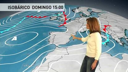 El sábado se producirán las últimas tormentas en el este. Podrán ser fuertes en Cataluña y sureste peninsular. Nevará en el Cantábrico y el Pirineo entre los 1000 y los 1500 metros. Tramontana fuerte en Cataluña y Baleares. Viento de componente norte. A partir del domingo anticiclón y a partir del lunes acusado ascenso de las temperaturas diurnas