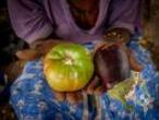 En Beleko se encuentra el jardín de Fiankala, donde las vecinas cosechan los mismos vegetales que en el de Kolonia. Jacqueline es quien manda allí. Su rostro está surcado de arrugas, pero es fibrosa y resistente como una atleta olímpica. Nada se le escapa. A la sombra de un mango pela ajos y presencia una reunión con varias propietarias del huerto en la que se habla de la dificultad de alimentar a familias enteras con los recursos disponibles. Todas las mujeres son campesinas y amas de casa. Todas hacen malabarismos para sacar a los suyos adelante y todas han conocido de cerca las consecuencias del hambre. “¡Mira, mira cómo está este!”. Jacqueline se ha levantado de un salto y ha tomado de los brazos al niño de una jovencísima madre. El chico ya tiene edad de andar, pero no logra sostenerse el pie porque se encuentra muy débil. “Así es la pobreza”, exclama Jacqueline en tono solemne.