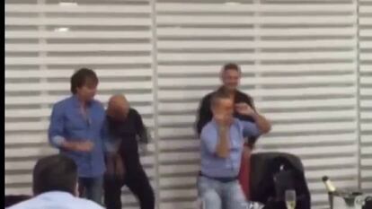 En las imágenes puede verse a José "Tacho" Ibarra, titular del gremio. Los hombres bailan una coreografía improvisada de la canción "La flor más bella", del grupo Memphis La Blusera y en las mesas puede verse que el brindis ha sido intenso y en cantidad. Botellas de champagne y copas más o menos vacías ganan la escena.
