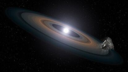 “Cuando la primera estrella evoluciona y se convierte en una enana blanca, que es el núcleo de la estrella original, las dos estrellas se acercan mucho, tanto que comienza a haber transferencia de materia de una a la otra”, explica Juan Hernández Santisteban, investigador de la Universidad de Southhampton en Reino Unido y autor de un estudio publicado en Nature en el que se explica el descubrimiento de este curioso sistema estelar. En ese baile agarrado entre las dos estrellas, tan próximas que se orbitan mutuamente cada 78 minutos, la estrella menor ha visto absorbida su materia hasta convertirse en una enana marrón, un objeto a medio camino entre una estrella y un planeta gigante como Júpiter, ya sin capacidad para mantener reacciones nucleares sostenidas en su interior. “Este proceso [en el que la enana blanca consume a su compañera hasta convertirla en una enana marrón] toma alrededor de 3.000 millones de años”, apunta Hernández.