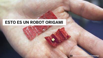 Científicos del Instituto de Tecnología de Massachusetts (M.I.T.) crearon un robot ingerible que se dobla y desdobla como origami. El aparato está hecho de intestino de cerdo seco y entra al cuerpo doblado dentro de una cápsula de hielo. Una vez en el estómago, la cápsula se deshace y el robot se desdobla. Controlado por imanes, puede extraer objetos pequeños del cuerpo, liberar medicamentos a puntos específicos y sanar heridas internas.