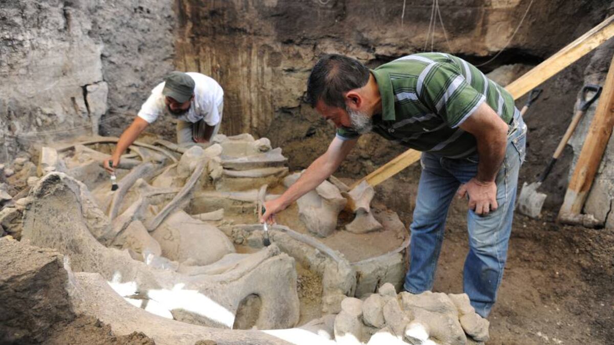 Una obra de drenaje saca a la luz un mamut probablemente devorado por hombres primitivos