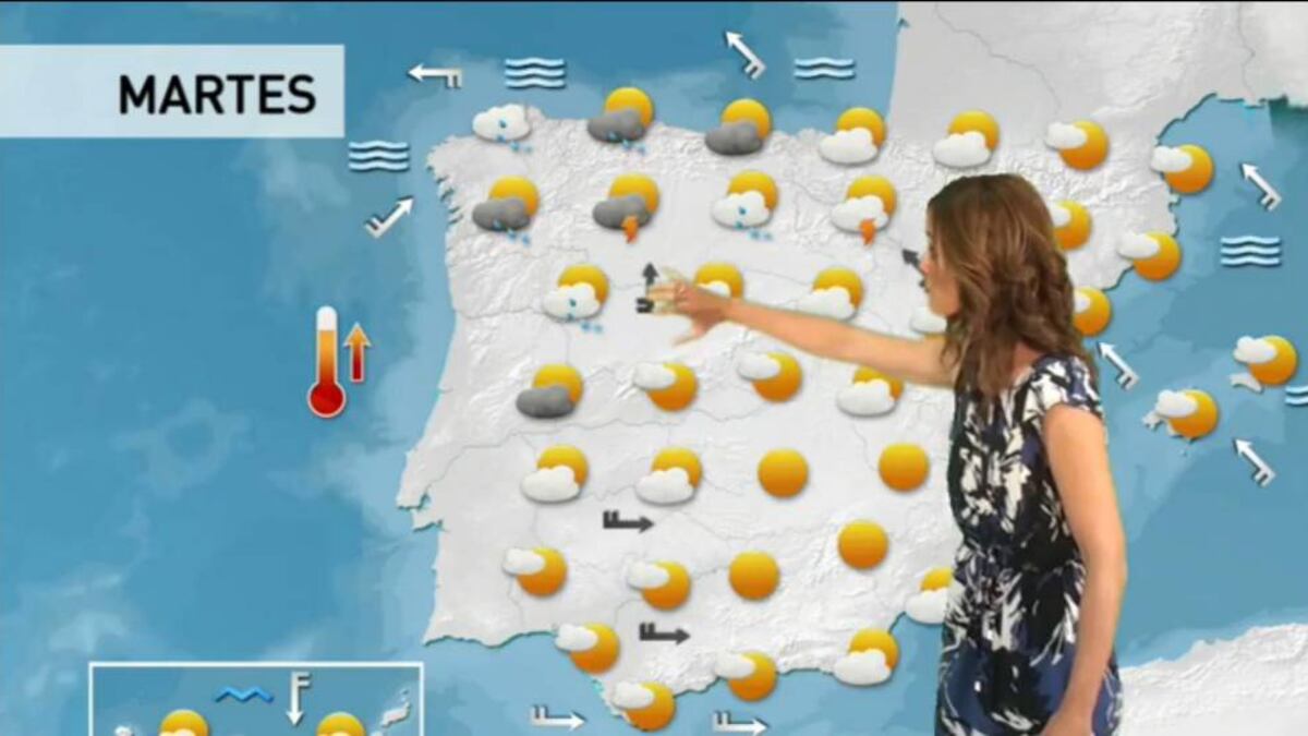 Suben las mínimas y las máximas este martes. Una borrasca atlántica dejará nubes y algo de lluvia en el noroeste, con algún chubasco tormentoso en el Cantábrico. En el resto nubes altas alternando con sol.