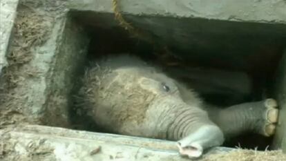 Rescatada una cría de elefante en Sri Lanka atrapada en un desagüe