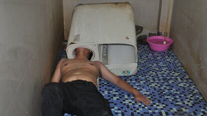 Un vecino de la ciudad de Fuqing, en el sureste de China, acabó con la cabeza atrapada en su lavadora después de introducirla en el electrodoméstico para repararlo. El hombre alertó a gritos a los vecinos, que intentaron liberarle pero sin éxito. Fueron los bomberos los que finalmente, y tras hora y media, consiguieron rescatar al ciudadano de tan increíble embrollo con una sierra radial.