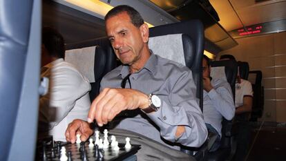 El olor a café con tostadas y el bullicio de la cafetería contrasta con el silencio que llega desde el interior de cada vagón, solo roto por el murmullo de los viajeros al abrir el regalo que el personal de a bordo les reparte. Es temprano, pero enseguida buena parte de los pasajeros —en su mayor parte personal de oficina y ejecutivos— dejan sus móviles para hablar sobre el ajedrez. “Me parece una idea acertada. Hay que recuperar los juegos de toda la vida, especialmente para los niños, que en su tiempo libre solo lo dedican a los videojuegos”, asegura Gasch mientras juega con la funda del ajedrez entre las manos.