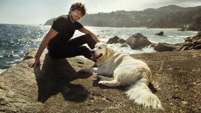 Sobre una roca frente al mar descansa Andrés Velencoso junto a su perro, Herry. El sol realza la belleza natural de amo y mascota, y la estampa bien podría parecer un anuncio. “Los golden suelen ser paticortos, pero él es más proporcionado y grande”, destaca uno de los top model españoles más internacionales.