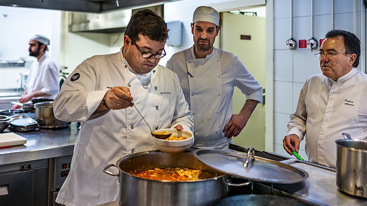 La familia Morán lo intenta en Casa Gerardo, su restaurante de Prendes, a 15 minutos de Gijón, creado por su familia en 1882. Hoy, entre Pedro y Marcos, padre e hijo, ponen al día lo mejor del recetario asturiano, especialmente la fabada, un plato creado en 1898 que ellos han aligerado, realizan con fabes frescas y han puesto en conserva en colaboración con La Catedral. “Ha sido un reto, porque el 95% de la fabada que se enlata en Asturias se realiza con materia prima mediocre y que viene de fuera. Nosotros cobramos 10 euros por un bote de fabada; es caro, pero ponemos en juego nuestro prestigio. Hemos apostado por los mejores conserveros. No podíamos hacer nuestra creación más emblemática con una marca mala; no nos preocupaba el dinero, sino hacerlo bien. Realizamos decenas de pruebas hasta que salió perfecto. Nos acompañó a Navarra la abuela, de 90 años, que dio el visto bueno. Y esa experiencia nos ha abierto la puerta para seguir haciendo platos precocinados de altísima calidad y demostrar que la alta cocina se puede meter en conserva”.Cada temporada Marcos Morán y su equipo enfilan su furgoneta hacia Mendavia. Cargan la materia prima y sus cazuelas. En la fábrica cocinan con parsimonia su fabada. El proceso es artesanal. El chorizo y la morcilla se cortan a cuchillo; el producto final se introduce en cada bote a mano. “Vivimos una tendencia a comer sano y rápido. Y en ese entorno está llegando una nueva generación de conservas más naturales y saludables. Una conserva puede estar a la altura de la mejor elaboración gastronómica. Ya puedes comer de estrella Michelin de bote. Lo importante es que sea natural. Que te puedas beber el agua del espárrago o el jugo del escabeche como parte del menú. Las conservas ya son cosa de foodies”.
