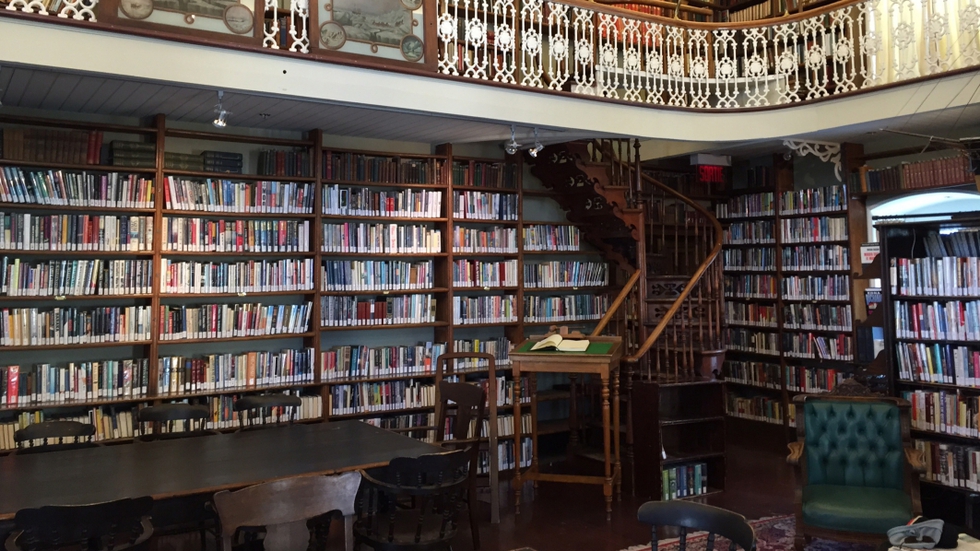 La Literary and Historical Society (Morrin Centre), centro de la vida cultural anglófila en la ciudad, es un punto caliente del recorrido: porque es allí donde tiene lugar el asesinato principal de la novela y porque en su preciosa biblioteca nos podemos resguardar del frío polar (ya no me noto tampoco la nariz y a duras penas las mejillas).