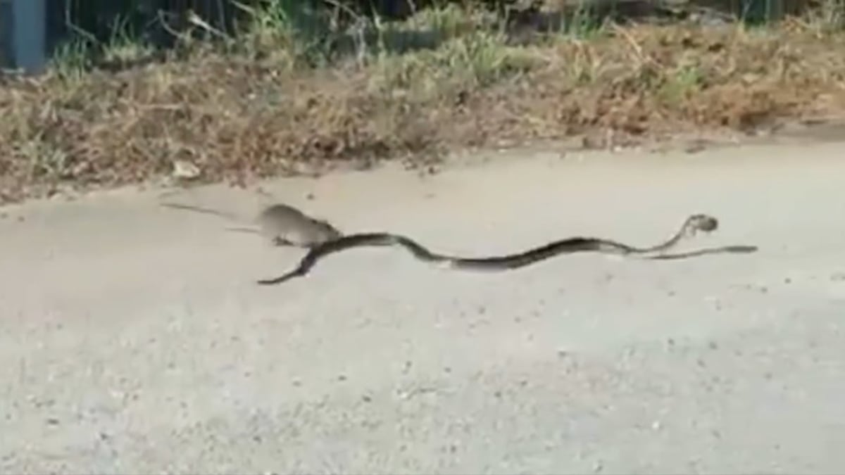 Una mamá rata pelea contra una serpiente para salvar a su cría