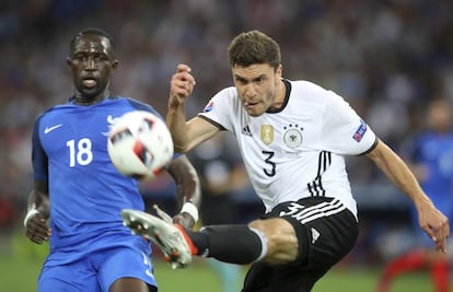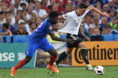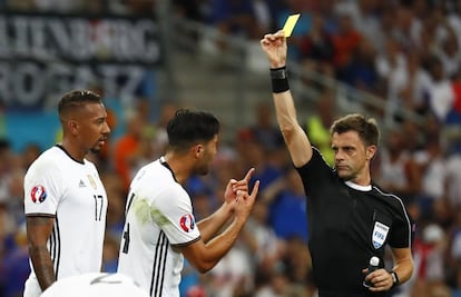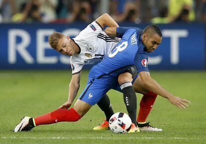 PETER POWELL (EFE)El galo Antoine Griezmann pelea una pelota con Jerome Boateng.OLIVER WEIKEN (EFE)El germano Joshua Kimmich lucha con Dimitri Payet.GUILLAUME HORCAJUELO (EFE)Intervención del guardameta francés Hugo Lloris.John Sibley (REUTERS)El arbitro Nicola Rizzoli muestra tarjeta amarilla al jugador alemán Emre Can.Kai Pfaffenbach (REUTERS)El alemán Mesut Oezil lucha un balón con el francés Samuel Umtit.