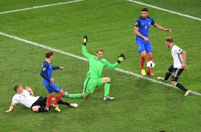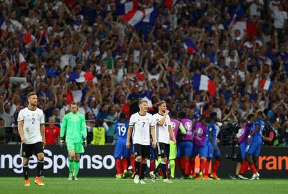 Desolación de los jugadores alemanes.Alexander Hassenstein (Getty Images)El entrenador francés Didier Deschamps.FRANCK FIFE (AFP)El entrenador alemán Joachim Low. Darren Staples (REUTERS)La alegria de Antoine Griezmann.Alex Livesey (Getty Images)El presidente francés Francois Hollande conversa con el presidente de la Federación Alemana de Fútbol, Reinhard Grindel, en presencia de Ángel María Villar.Alexander Hassenstein (Getty Images)El jugador francés Olivier Giroud cabecea el balón ante el germano Benedikt Hoewedes.