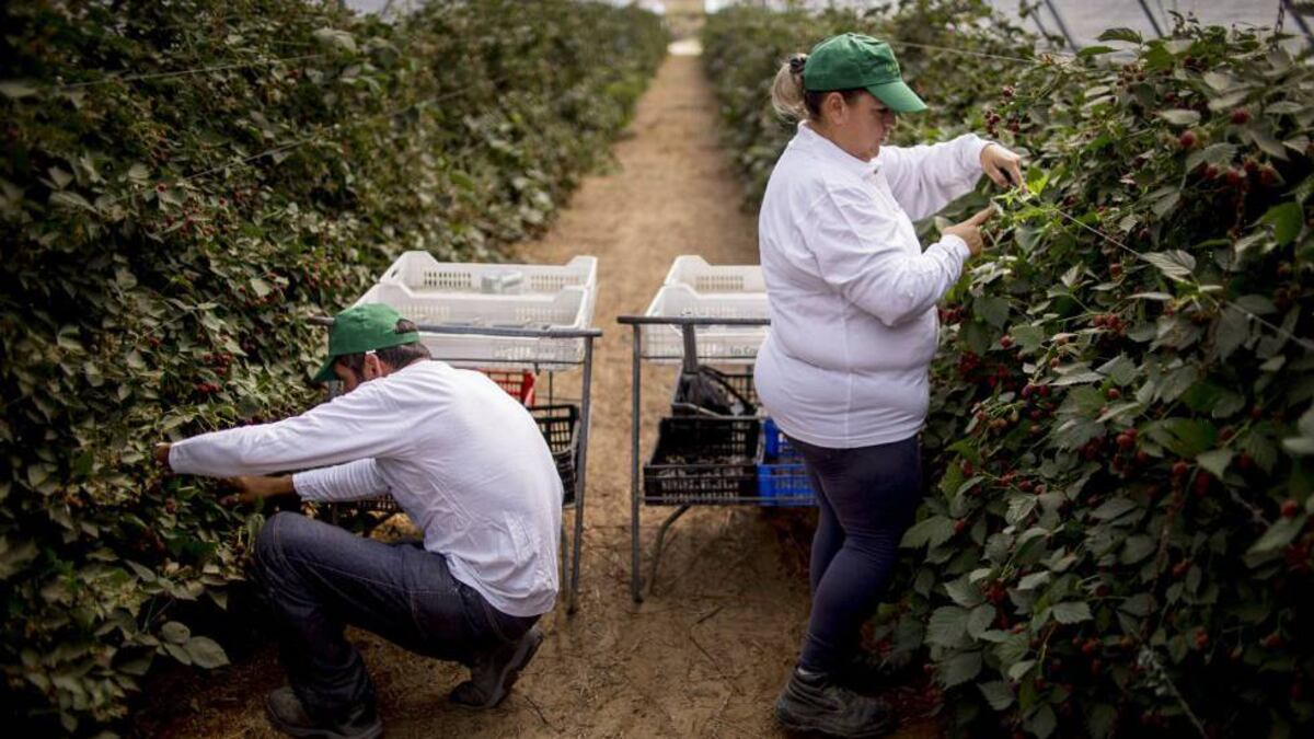 “Se me acabó el trabajo en la hostelería y vine al campo”, cuenta Mario Sánchez, de 57 años. “Aquí trabajan mi pareja y mis hijas. Es duro, pero se vive”, dice este manijero de un campo de moras situado en Rociana del Condado. “Al principio las jornadas eran más cortas, ahora cada vez son más largas, pero me gusta el campo”, cuenta en un breve descanso de la faena. Como él, al menos 112.000 personas se han dedicado a la recogida agrícola en Huelva en los cinco primeros meses de este año, según informó el subdelegado del Gobierno en la provincia, Enrique Pérez Viguera. La mayoría de ellos son temporales y son trabajadores locales. “Ya casi no hay inmigrantes. Y los que vinieron ya son residentes, como las rumanas. Yo tuve la suerte de empezar hace mucho y trabajo todo el año. Aquí estaré hasta que pueda, de lunes a sábado, aunque sea verano”.